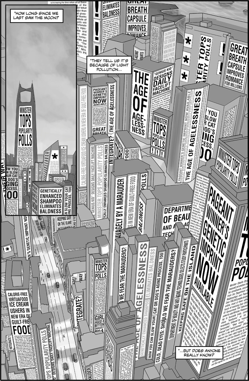 In a city on the brink of information overload, news headlines shout from the towering skyscrapers and the people themselves buzz with news via the “Feed”...